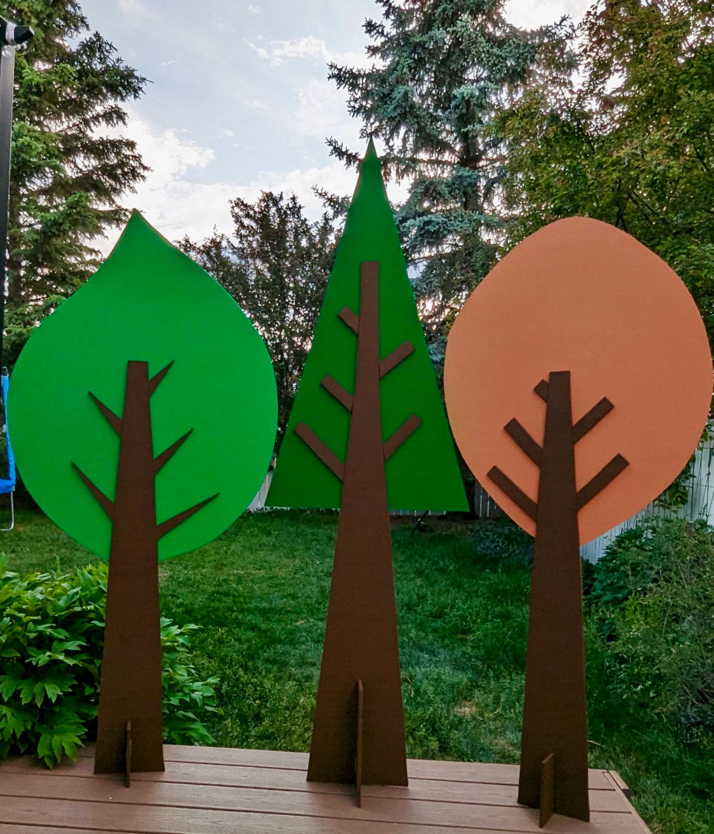 - 3 Painted Rectangular Pedestals (blue, red and yellow).